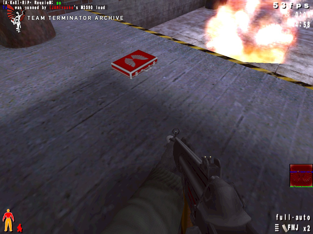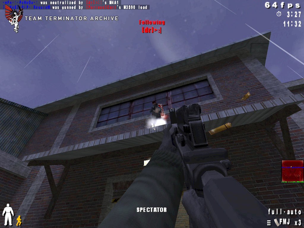 Added in the last release and refined in this one, leaning is one of those quintessential fundementals of TrueCombat that most must master to be effective. Snipers down at the other end of the corridor but you just don't know where? No problem! Take a quick peak by pressing either the lean left or right button (depending on which side of the corridor you're on of course) to find out! Once you have their positions, you can try straffing out and popping off a quick round (burst... clip... whatever) or you can try my personal favorite, the Kamikaze Nade Run! Bwuhahaha! Ahem. Anyways, leaning is their so you can deal with static defenses or for peaking around a corner to make sure you aren't running into a swarm of enemies. Keep in mind, however, that your player model does lean with you... so if you see them (and they're paying attention) chances are, they saw you too. Oh well. The TeamTerminator giveth and the TeamTerminator taketh. So sayeth the Holy Manual of TrueCombat.